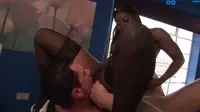 The video opens with a strong, confident ebony woman donning a tight latex suit and high heels, as she enters the room where her white male slave awaits for their interracial session of domination and submission.Hes bound to the bed, his muscular body glistening with anticipation under the bright lights.She orders him to start by orally pleasuring her this is not just any ordinary blowjob but one filled with intense lust and passion.The woman takes control as she straddles the slave, guiding his hard cock into her wet cunt, demanding that he give her a rough, animalistic ride.Her powerful thrusts send waves of moans through the room, each one punctuated by her guttural, erotic groans.As their bodies collide in an explosive mixture of dominance and submission, its evident just how much she enjoys this interracial play.She doesnt stop there she takes it a step further as the ebony goddess commands him to rim her tight asshole while she continues her intense ride on his massive tool.Her eyes locked onto their connection, he finds himself lost in a world of submission, eagerly fulfilling her desires.Each lick brings her closer to climax, and soon enough, shes ready for the final act a facesitting blowjob that pushes him beyond his limits.His face is buried between her toned thighs, her fingers clenching tightly into his hair as he begins to suck on her engorged clit with skillful precision.His tongue works in rhythm with his lips, coaxing waves of pleasure through her body that are felt even before they crest the edge of ecstasy.She knows what she wants and doesnt hesitate to express herself harder, deeper, more intense! Her command echoes throughout the room, amplifying their passion in the process.As they reach their peak, she commands him to cum.His cock throbs with tension before unleashing a torrent of hot jizz that she eagerly catches, using her skilled hands and mouth.Each drop is caught in anticipation, relishing every droplet as it meets her eager tongue.Her eyes lock onto his as she relishes the moment, her cunt still trembling from their wild ride.Satisfied with this interracial experience, the ebony dominatrix releases her slave from his bonds and exits the room, leaving him panting and spent on the bed.The screen fades to black, setting the stage for the next lustful encounter.